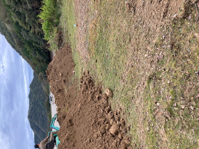 ダムの水が浸水しないよう盛り土工事中です。